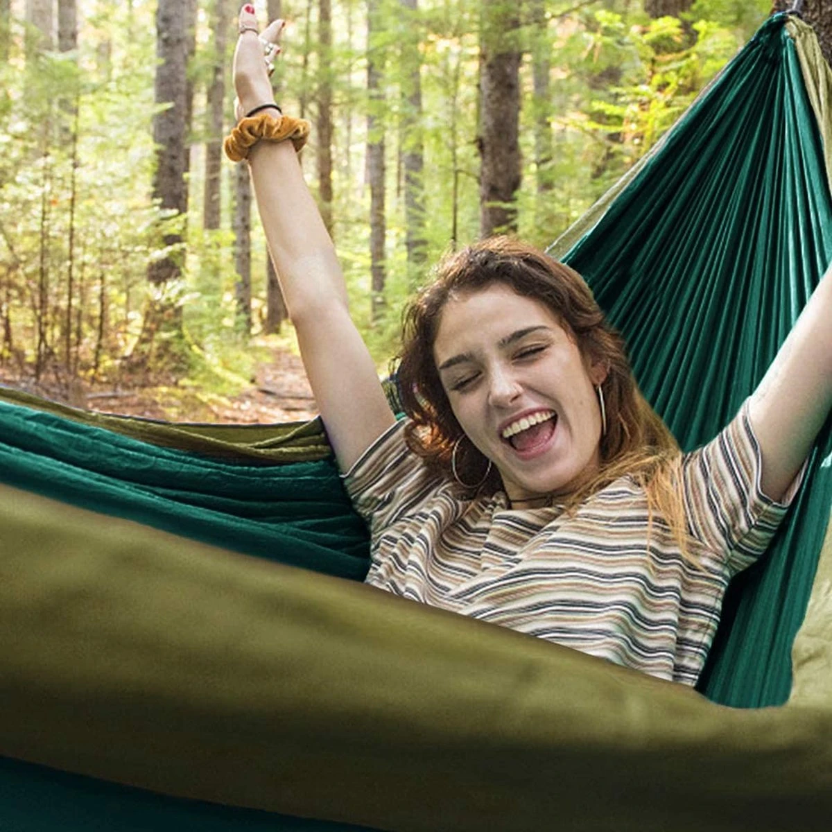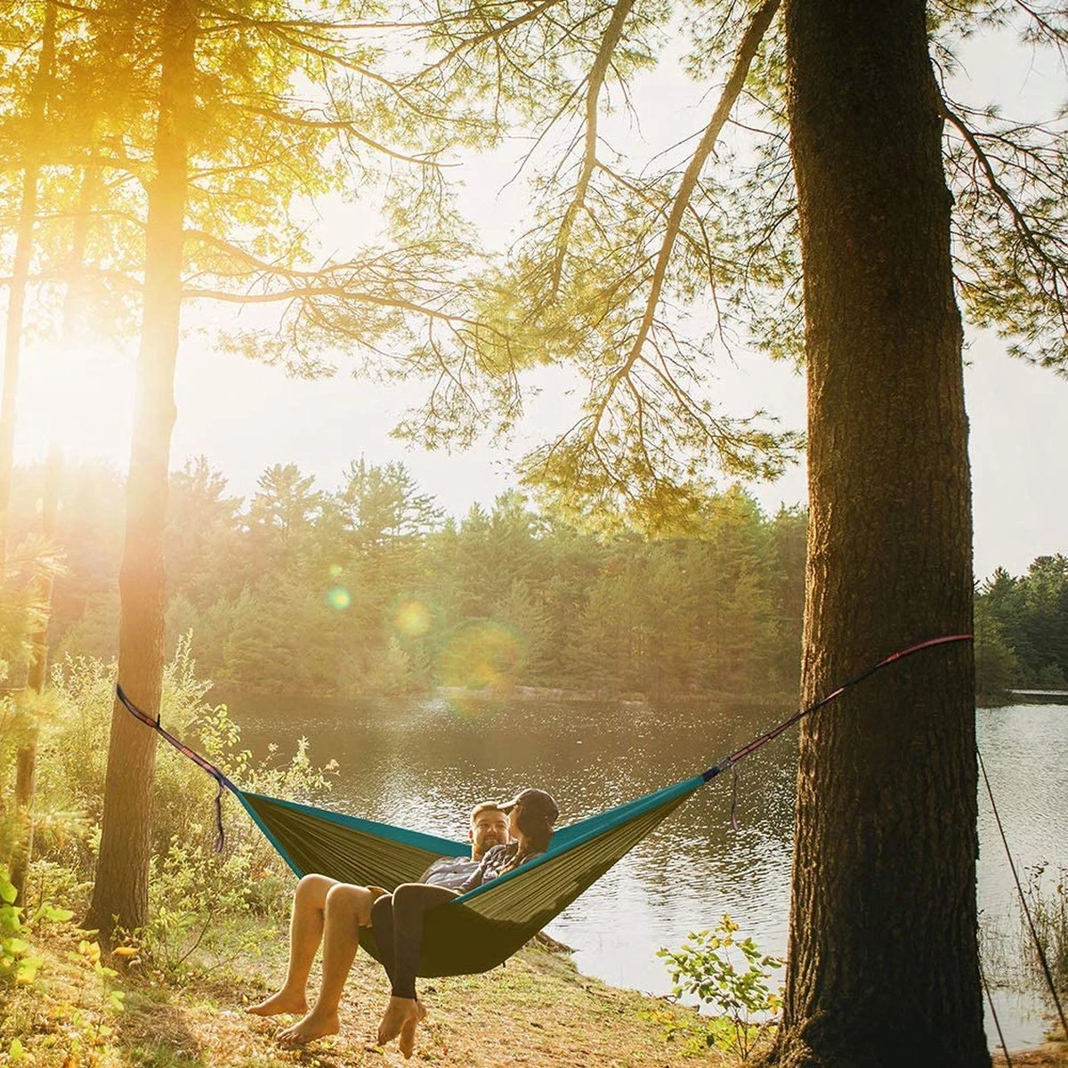 - Veilige hangmat met bevestiging set: de Kanyon Hangmat is snel en eenvoudig op te hangen. De bevestigingsset bestaat uit sterke zwarte D-Karabijnen. Deze snijden niet en houden de hangmat stabiel. Ook de banden waaraan je de hangmat ophangt, zijn een sterke upgrade in vergelijking met het standaard hangmattouw. De lengte is bovendien naar wens aan te passen voor het beste comfort.